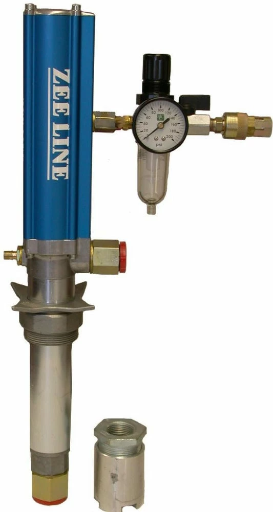 Oil Pump – 1:1 ratio stub style oil pump. Fits containers with a 2″ bung opening. Maximum air pressure of 145 p.s.i. and a working pressure of 100 PSI. Features a self lubricating pressure relief port, double acting connecting hoses and air line filter. Pressure relief valve is available at an additional cost.