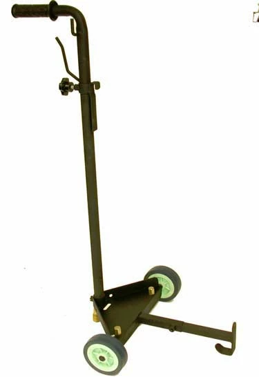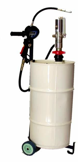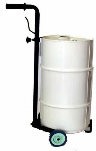 Adjustable trolley for carrying 16 gallon to 120 lb. drum. A convenient tool for creating a portable grease or oil dispensing system.