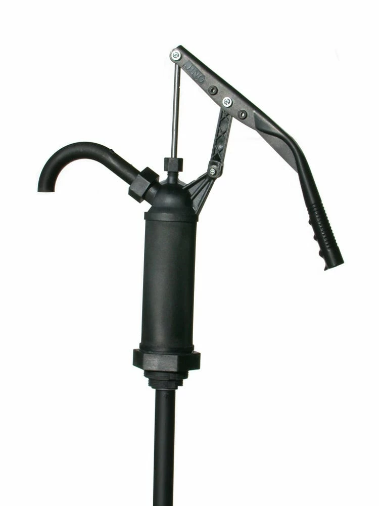 Lever style PPS pump for dispensing strong acids and alkali solutions from 15-55 gallon drums.