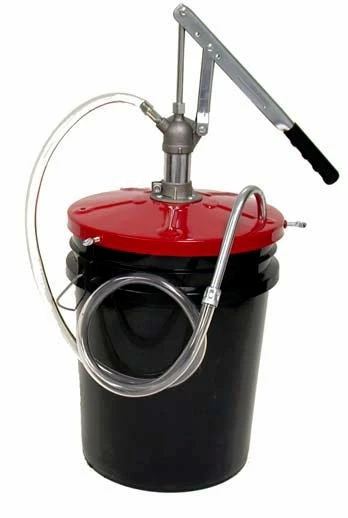 Lube Pump – fits full open head pails 5 through 6 1/2 gallons. Includes pump, pail cover, and 4 feet of clear vinyl hose with curved discharge nozzle. Can be furnished with MODEL 1500 universal pint meter by special order at additional cost.