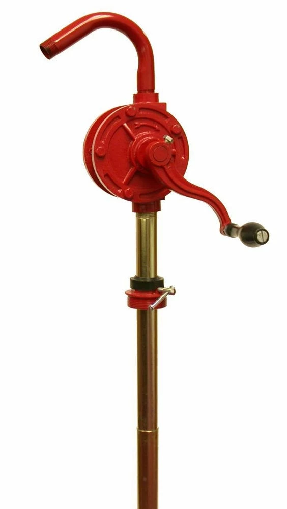 Economy Rotary Pump – fits 15 through 55-gallon drums with 2″ NTP bung opening. Dispenses gasoline, diesel fuel, ATF, Light oils, and hydraulic oil. Heavy-duty cast iron body with 3 piece steel suction tube 3/4 inch threaded discharge spout (M). Hose assemblies 2158 and 2178 available at extra cost. Dispenses approximately 7-1/2 gallons per 100 revolutions.